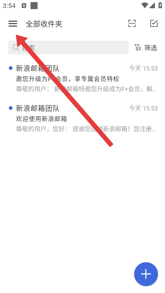 1、在新浪邮箱首页,点击左上角三条横线的菜单按钮,展开侧边栏。