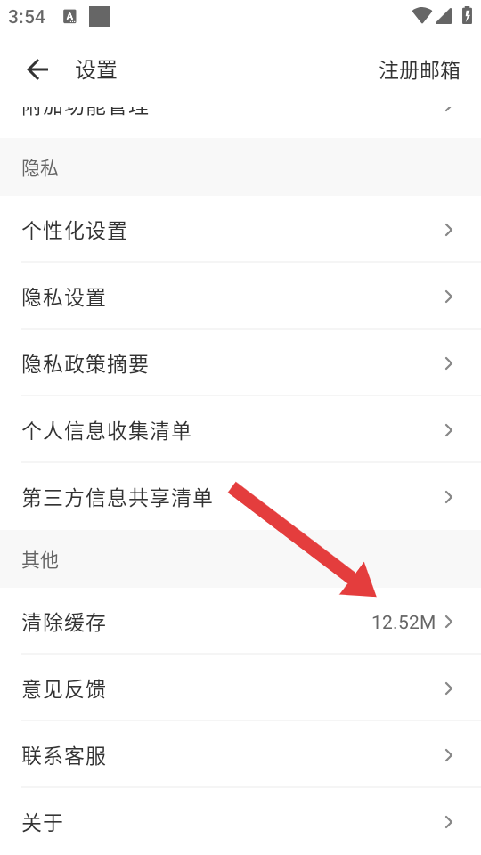 3、在设置页面中,找到清除缓存选项,点击进入缓存清理确认界面。