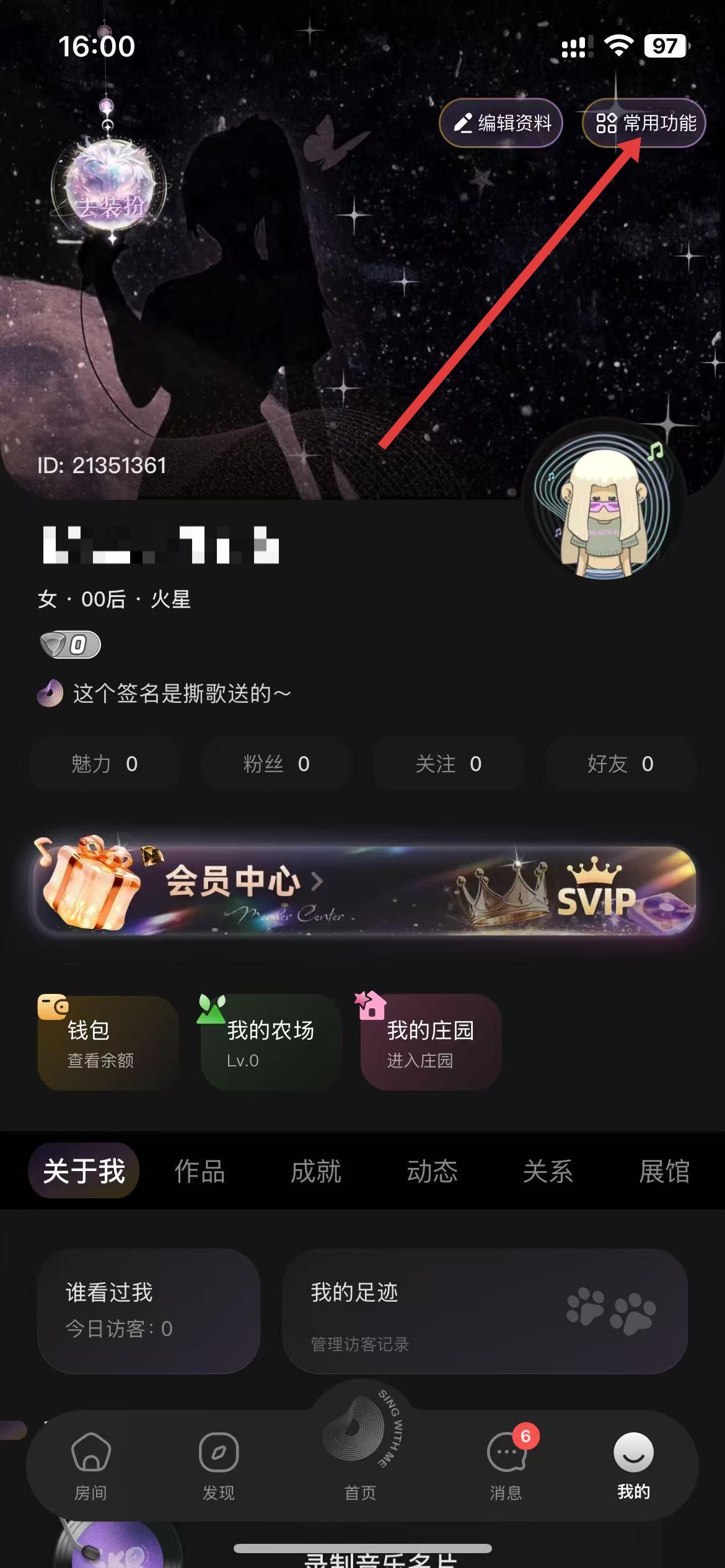 1、点击底部导航栏我的,进入个人界面,点击界面右上角常用功能按钮,在展开选项里找到并点击设置。