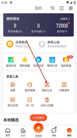 2、在我的页面中,找到并点击我的认证选项,进入认证中心。