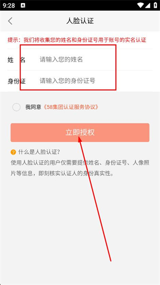 4、输入个人信息,点击确认授权,即可完成实名认证。
