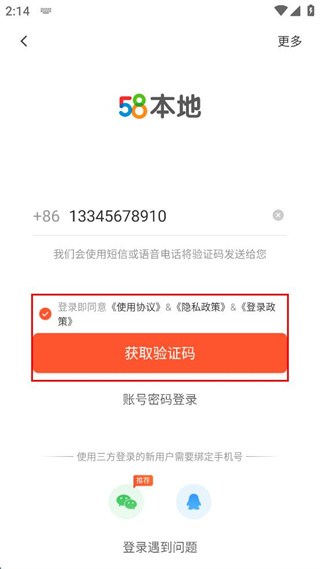 3、输入手机号,勾选同意协议后点击获取验证码按钮,准备验证。