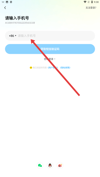 3、在登录页面可以在输入框中输入一个新手机号,用来注册小号。