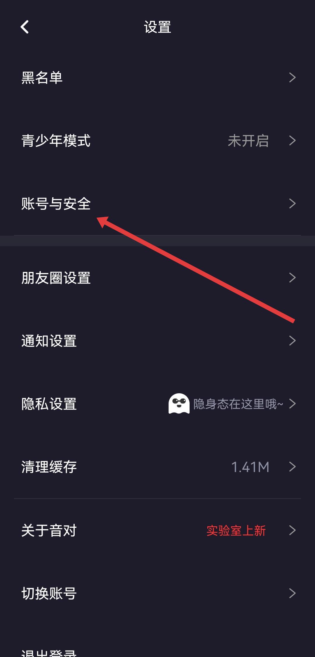 2、在设置的页面中,找到并点击账号与安全选项,进入账号安全设置页。