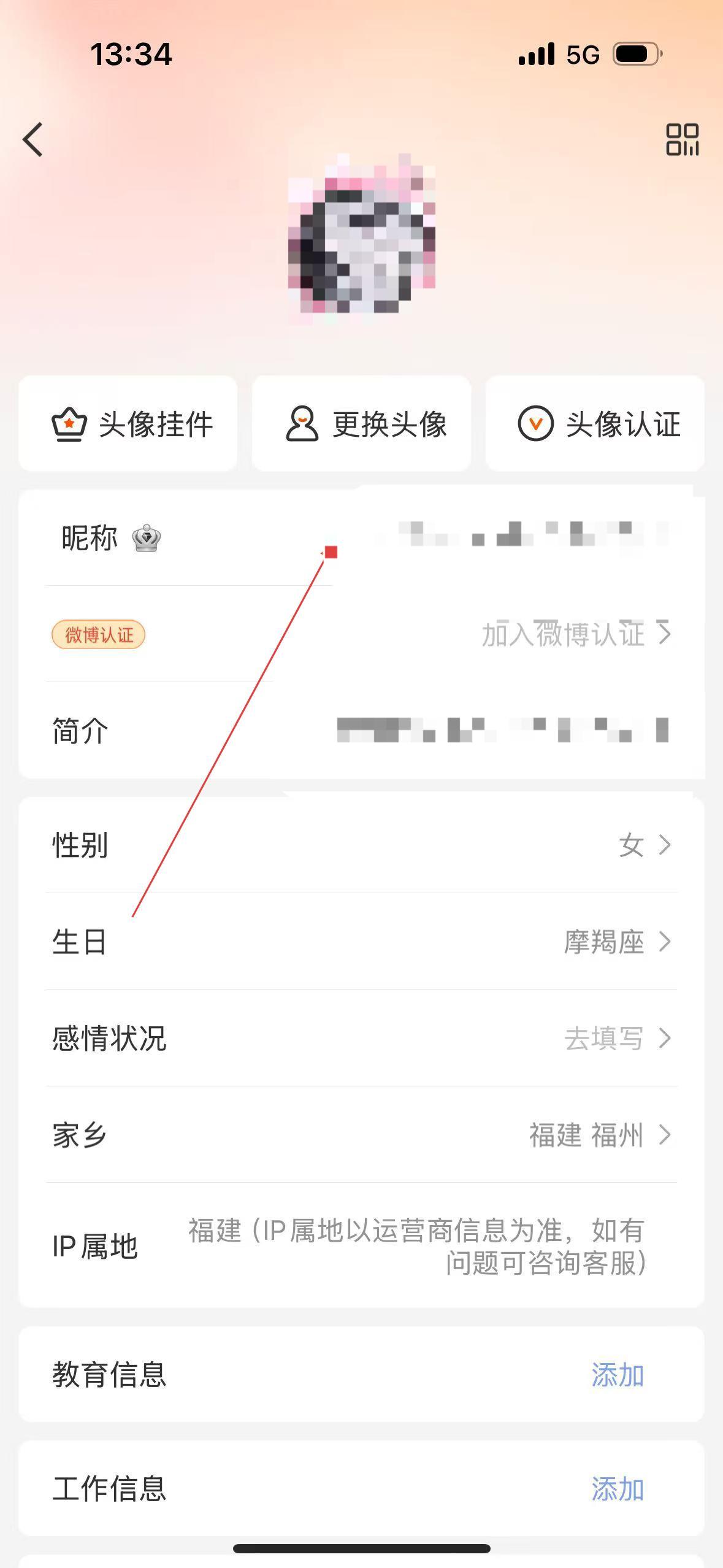 4、在资料编辑页面,可修改昵称个人信息。