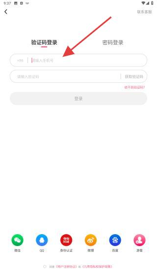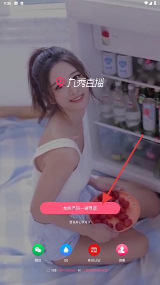 1、打开九秀直播APP,进入登录界面后,点击本机号码一键登录。
