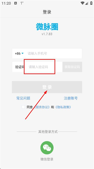 3、在验证码输入框中填写收到的验证码,点击登录完成账号的登录操作。