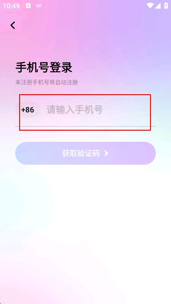 3、在手机号登录页面的输入框中,输入自己的手机号。