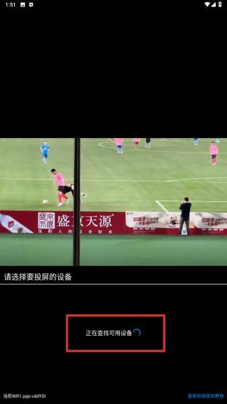 4、播放器会搜索同一网络下的可投屏设备,过程需要稍等几秒。