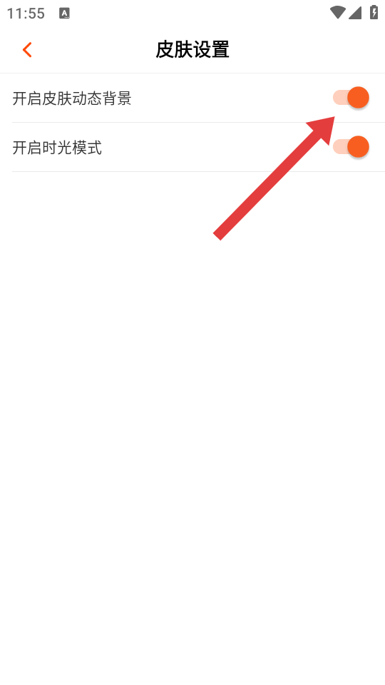 3、在皮肤设置页面中,找到开启皮肤动态背景选项,开启其右侧的开关,成功设置皮肤动态背景。