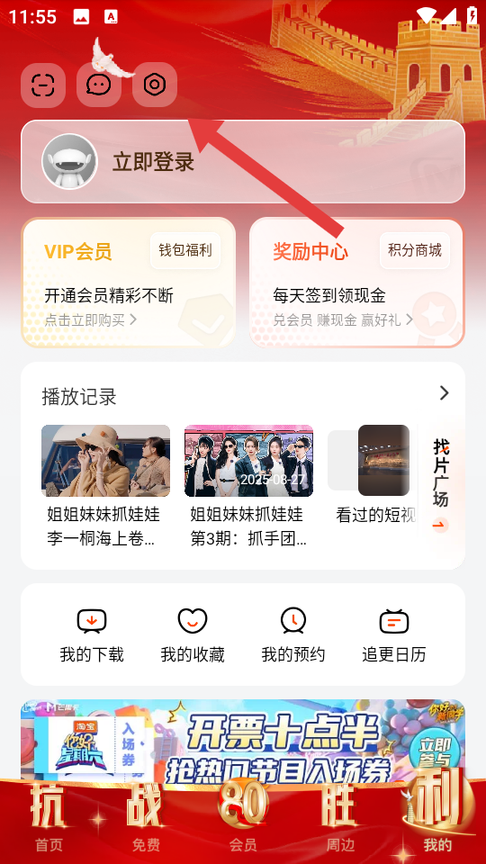 1、打开芒果TV,点击底部导航栏的我的,进入个人中心页面,再点击页面右上角的设置图标。