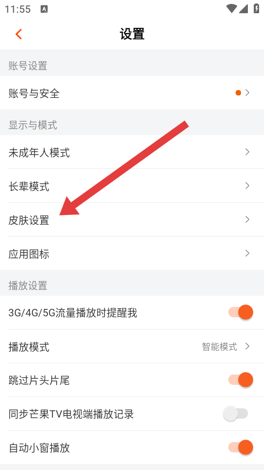2、进入设置的界面后,需要找到并点击皮肤设置的选项,进入皮肤设置的页面。