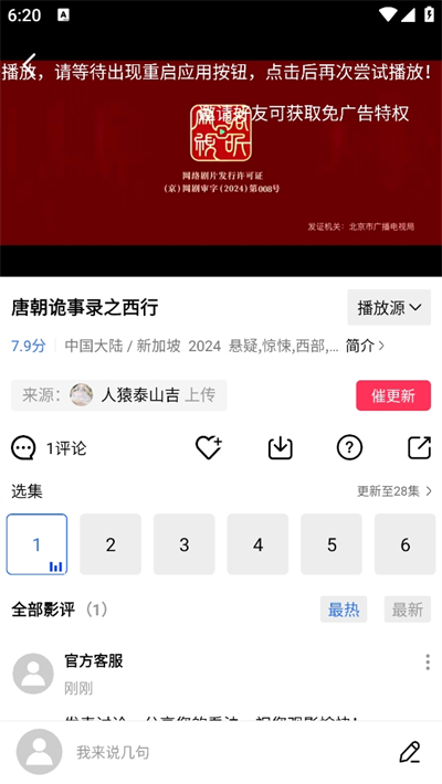 4、点击影视后即可直接进入,并可以查看到播放源、影视介绍等,还能自己选集观看。
