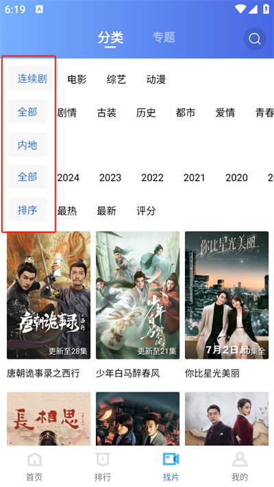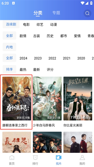 3、从中可以通过筛选找寻喜爱的影视资源,我们以唐朝诡事录之西行为例;