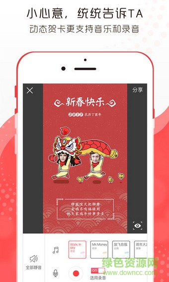 3.小心意,统统告诉ta,动态贺卡更支持音乐和录音!