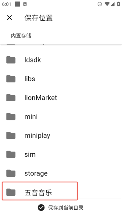 7、进入后只要选择保存到当前目录后,即可修改音乐的位置方便你随时查看下载到本地的音乐。
