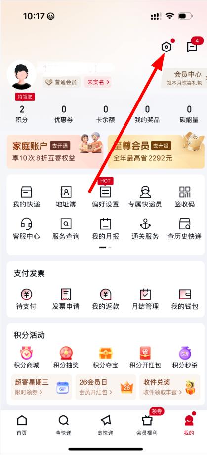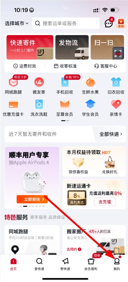 1、打开顺丰速运App,点击底部导航栏的我的进入个人中心页面。
