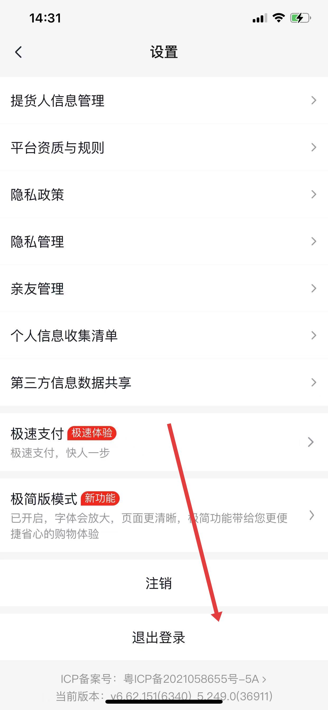 3、在设置界面下滑至底部,点击退出登录,即可登出当前账号。