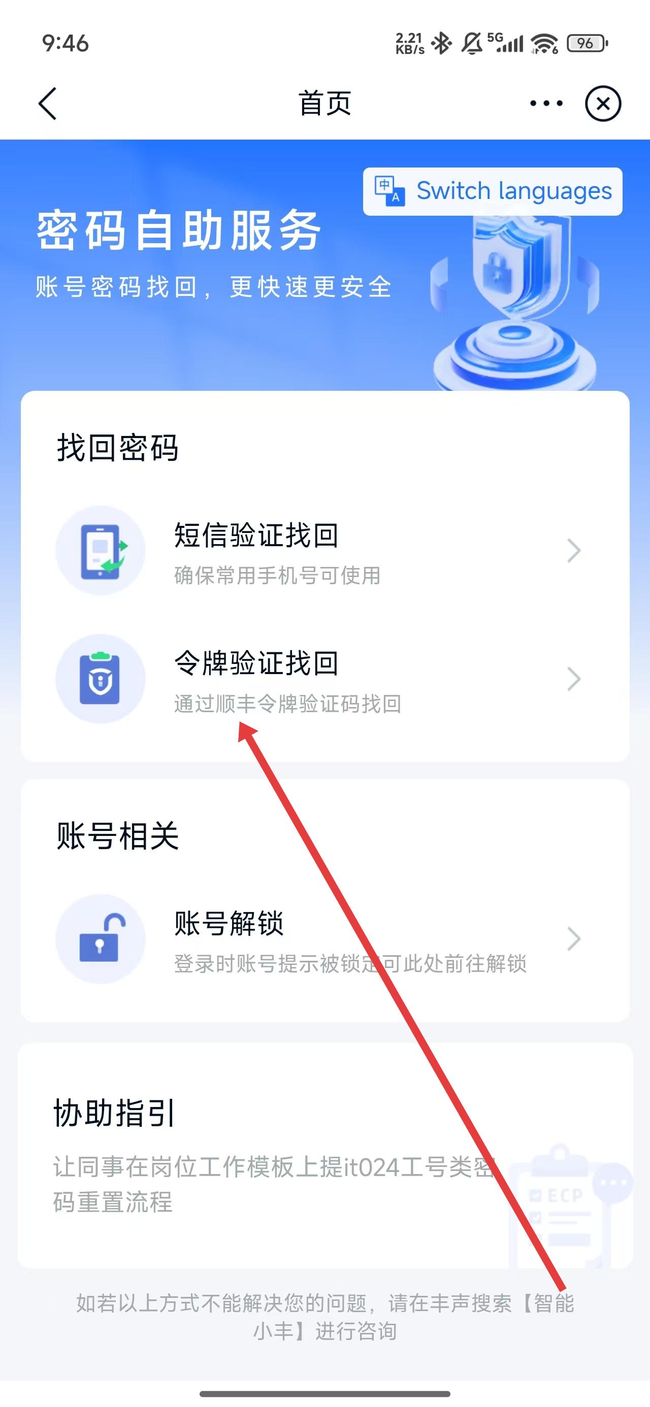 3、在跳转到首页页面中后,可以点击使用令牌验证找回的方式找回密码。