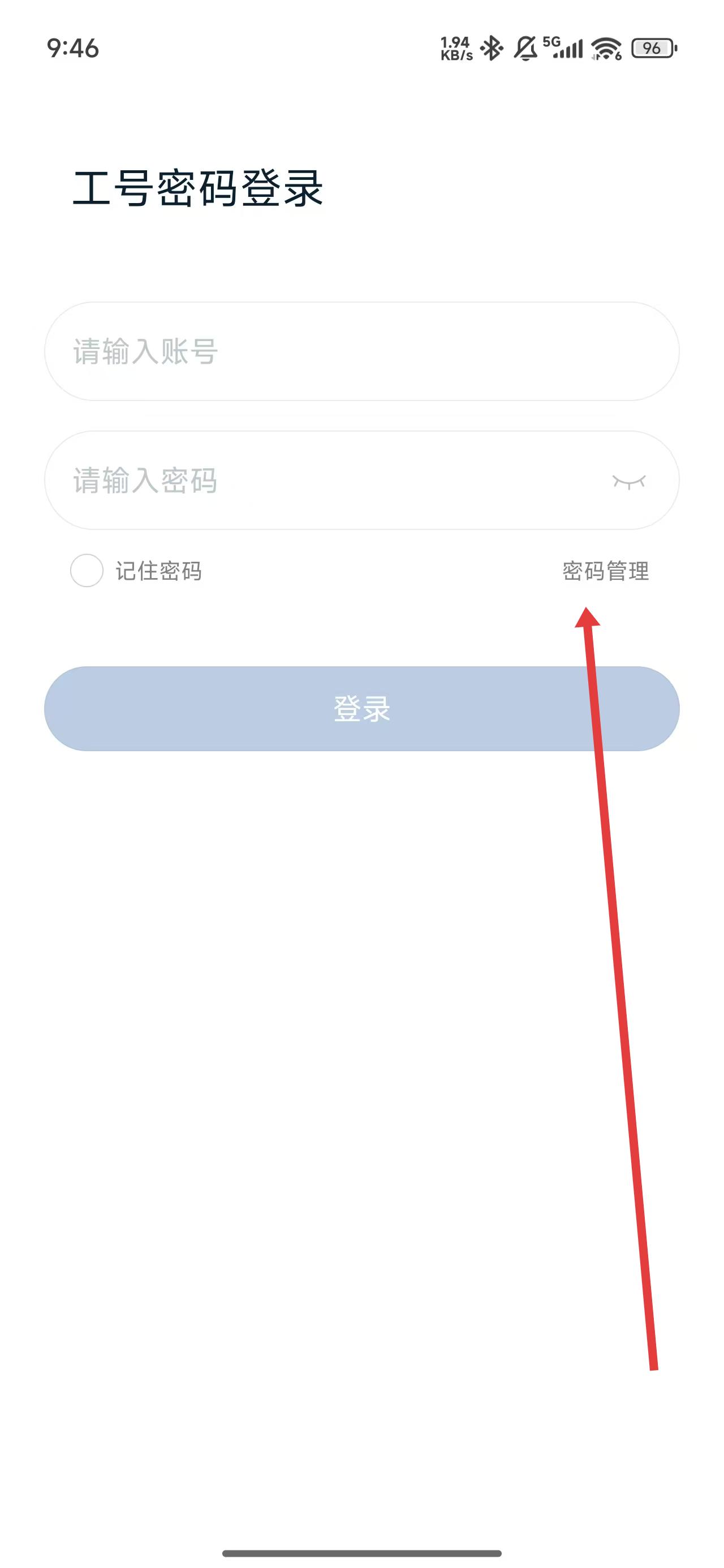 2、进入到登录页面后,如果忘记了密码可以点击密码管理按钮解决。