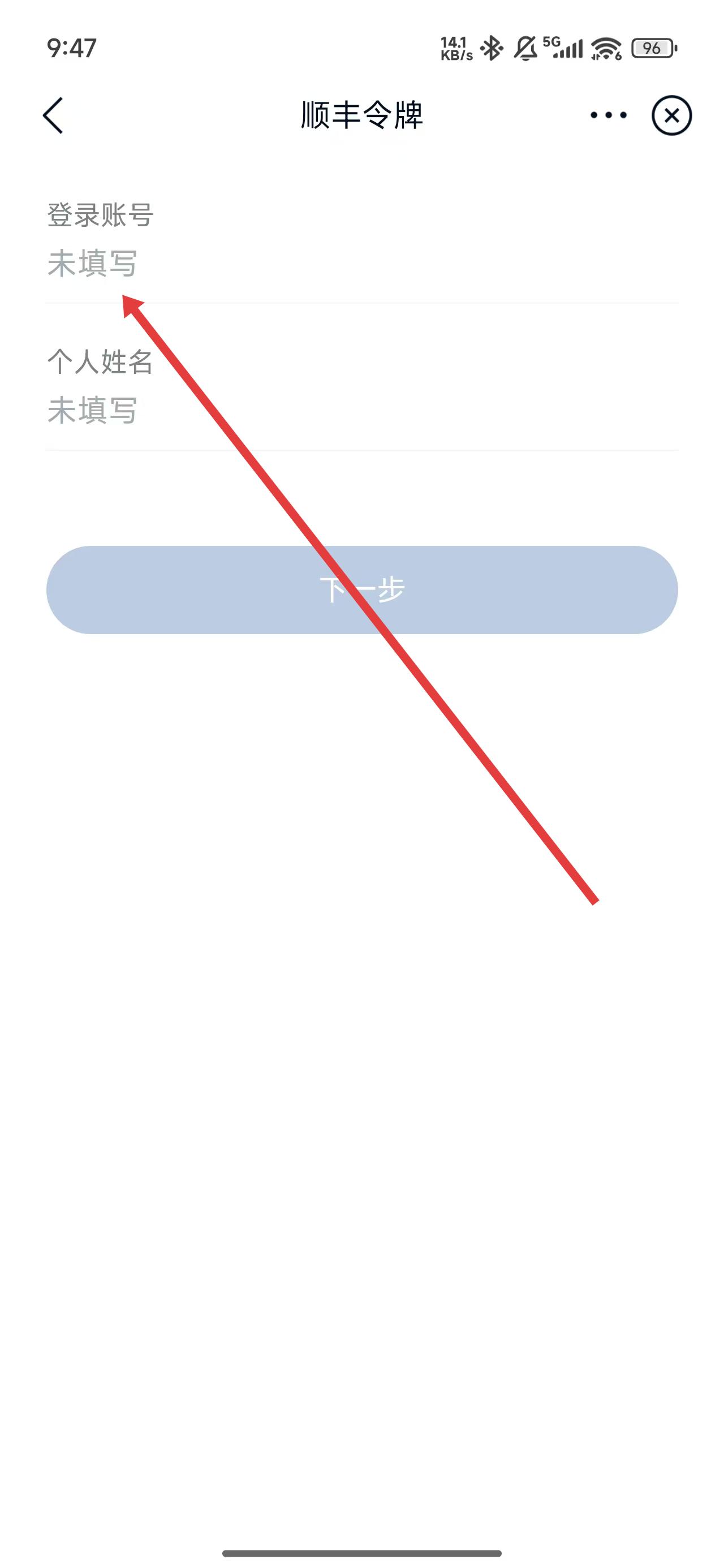 4、点击顺丰令牌页面下的输入框,依次输入账号和个人姓名后完成找回操作。