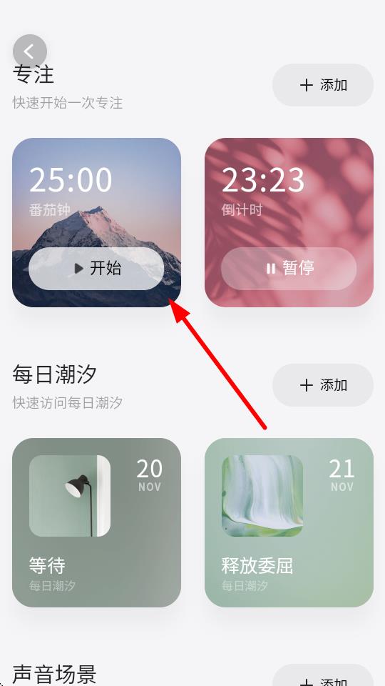 计时过程中,点击计时圈可以关闭白噪音,你也可以进入设置页关闭