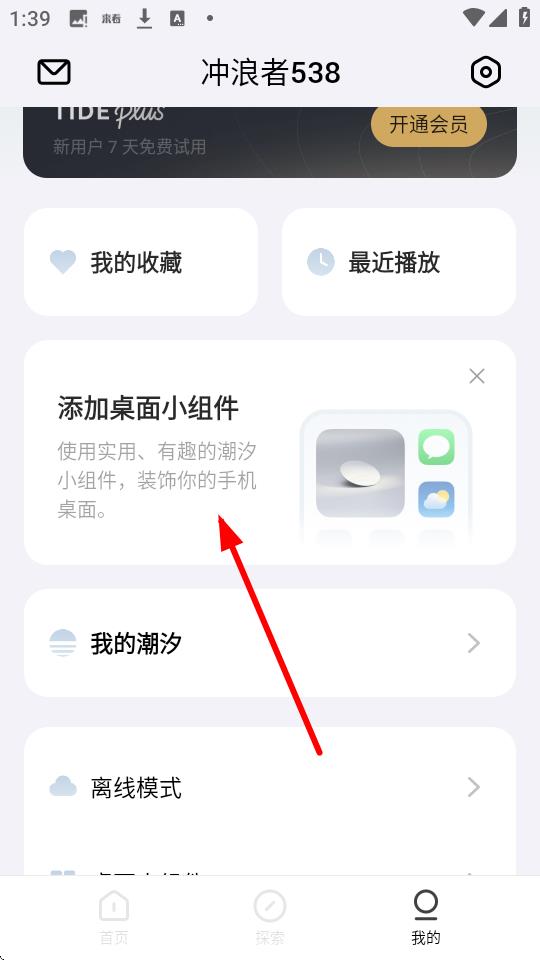 2、在个人页面中,找到添加桌面小组件区域并点击进入。