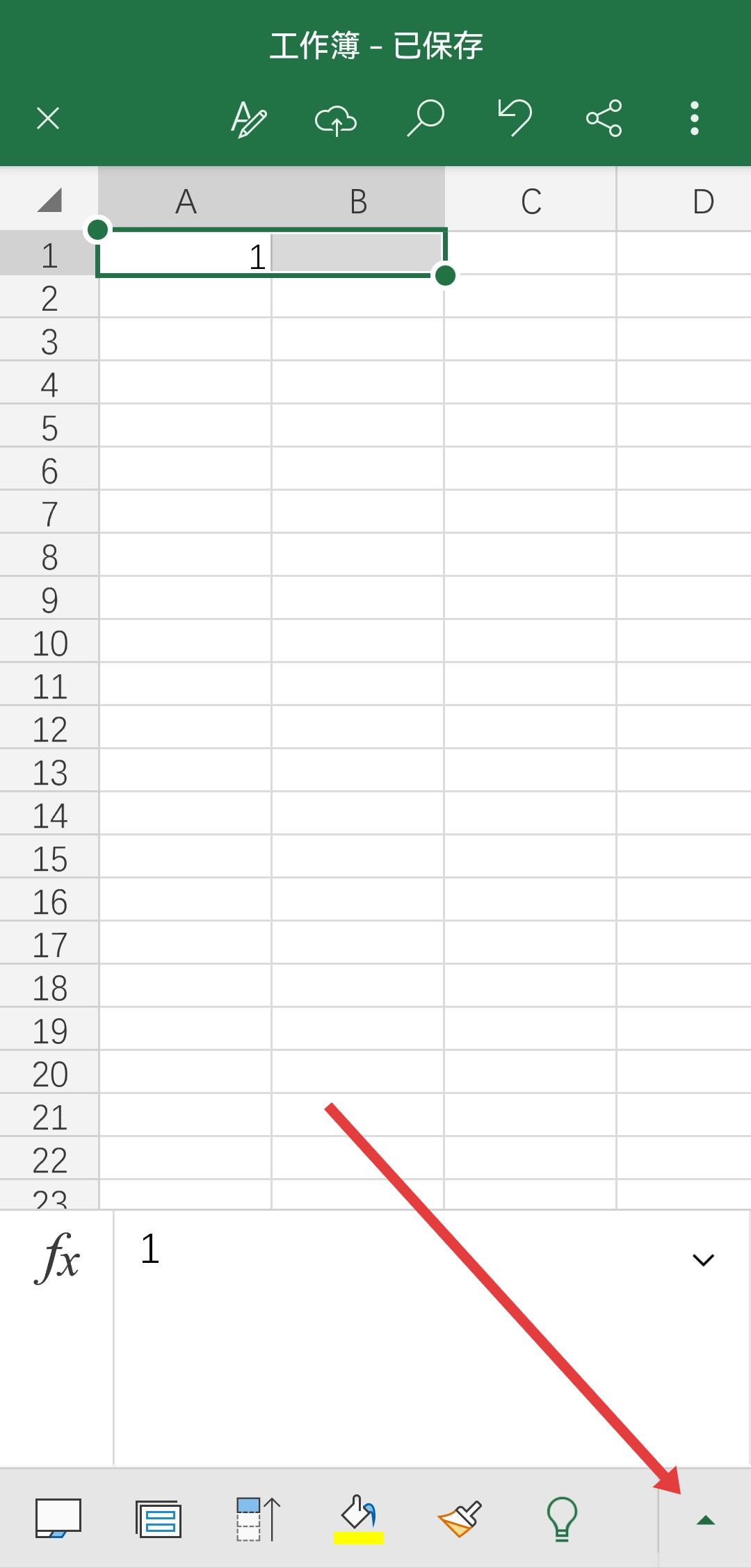 1、打开软件excel进入到表格中,我们需要点击页面下方功能栏的展开箭头。