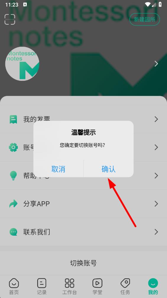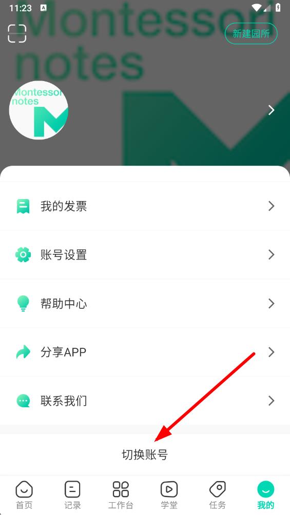 1、打开蒙氏手记app,点击底部导航栏最右侧的我的选项,进入个人界面。