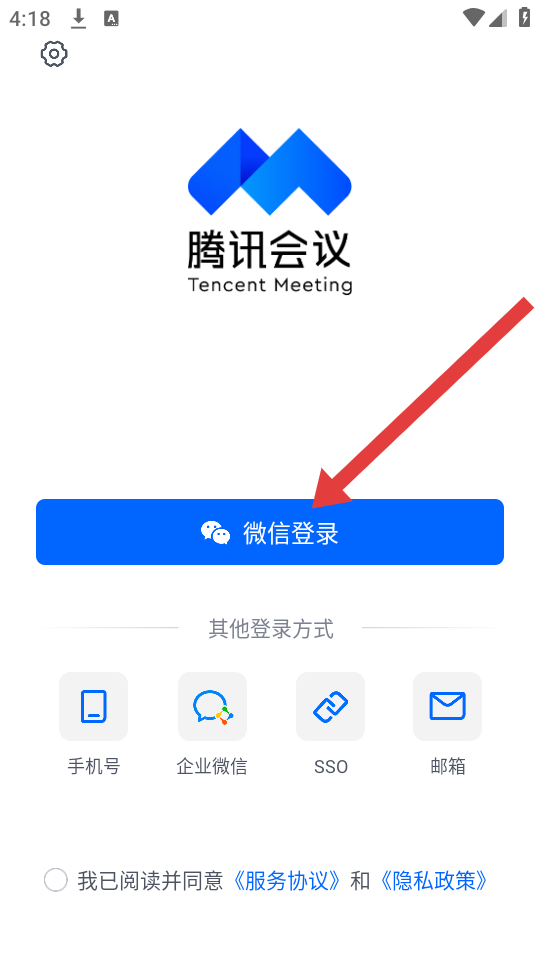 2、回到登录的页面,勾选协议后,选择新账号的登录方式如使用微信进行登录,进入登录的流程。
