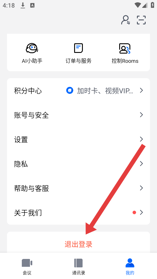 1、打开腾讯会议APP,点击页面左上角头像进入个人中心,滑动至底部点击退出登录并确认,退出当前账号。