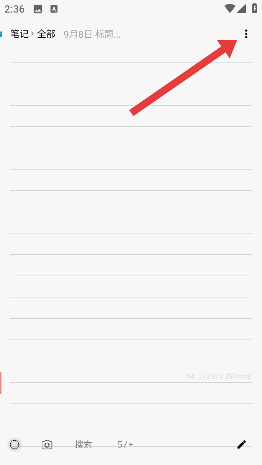 1、打开随手写笔记界面,点击右上角的三点菜单按钮,调出功能的选项。