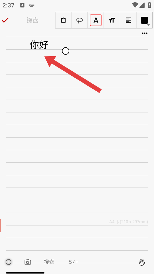 4、设置完成后,在笔记编辑区域输入文字如你好,即可看到字体按调整后的样式呈现。