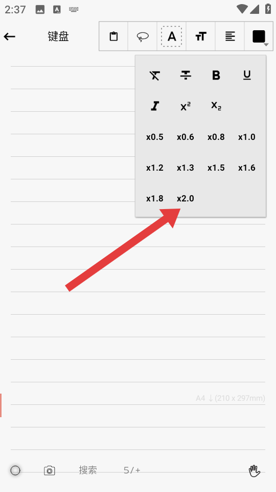 3、在字体设置菜单里,选择所需的字体大小倍数如示例中的x2.0,调整字体显示参数。