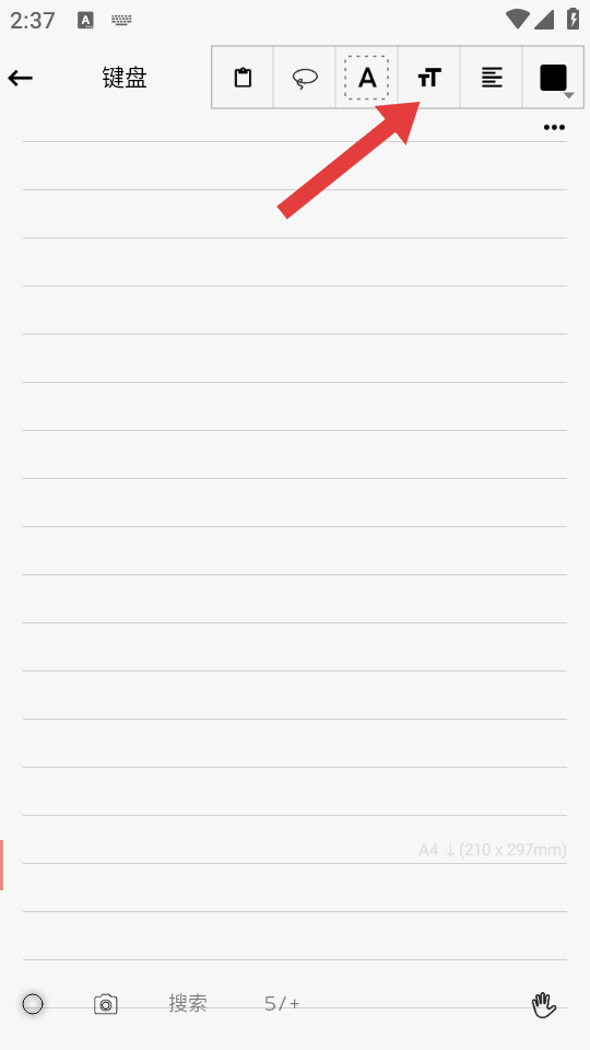 2、在弹出的功能栏中,点击带有字体调整标识的按钮,展开字体设置的菜单。