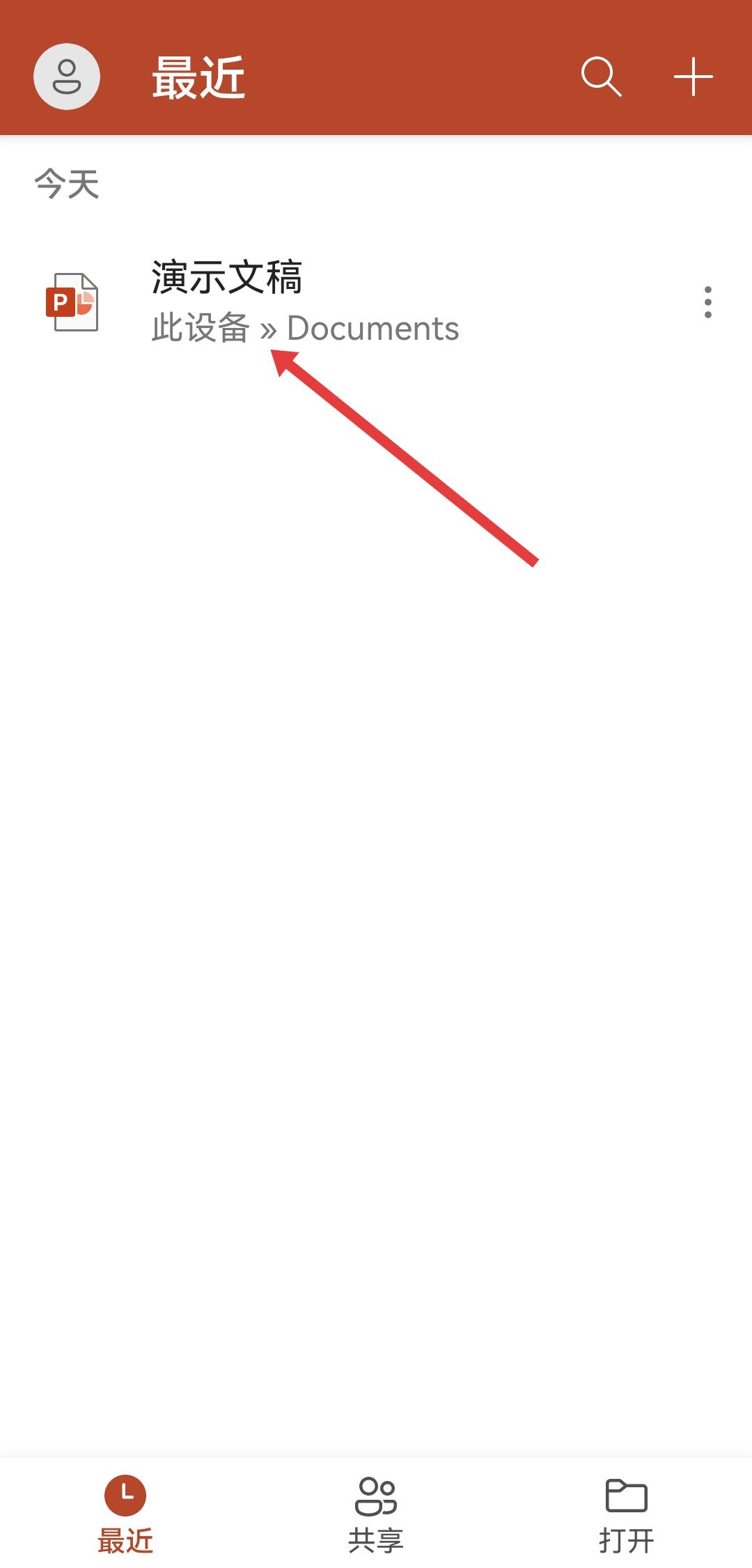 1、打开Microsoft PowerPoint,在最近页面点击目标演示文稿如演示文稿,进入幻灯片编辑界面。