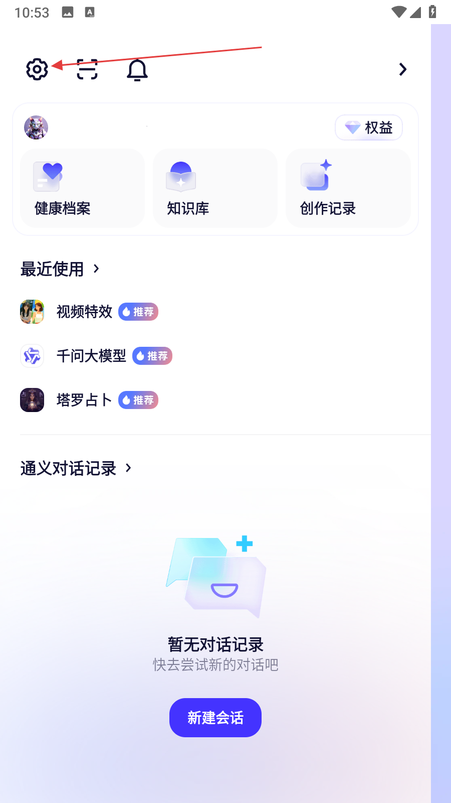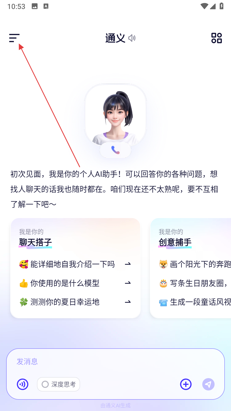 1、打开通义APP,点击界面左上角的三条横线菜单按钮。