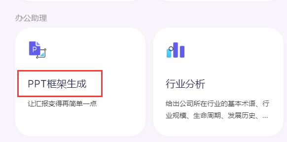 2、在打开的页面中选择办公助理中的【PPT框架生成】;
