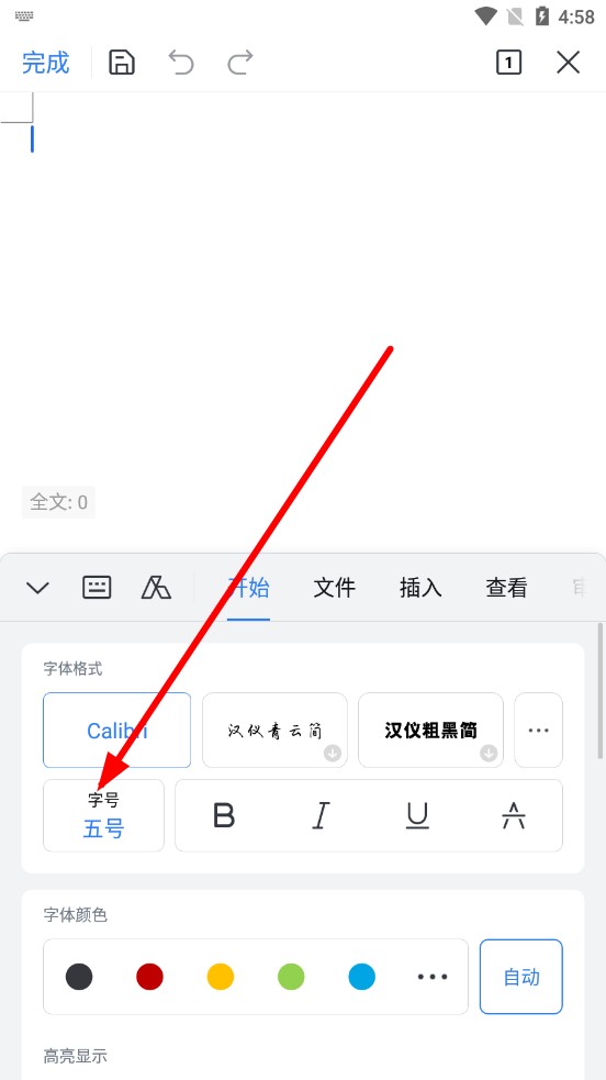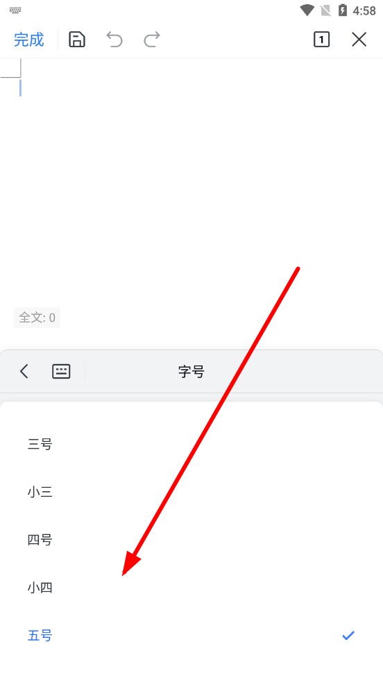 4、在字号选择界面,点击想要设置的字号,即可应用新字号到后续输入或选中的文本。