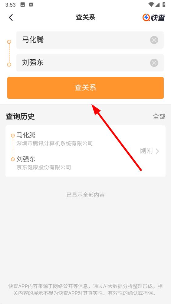 3、在查关系页面的输入框中,输入想要查询关系的人员姓名,点击查关系按钮。
