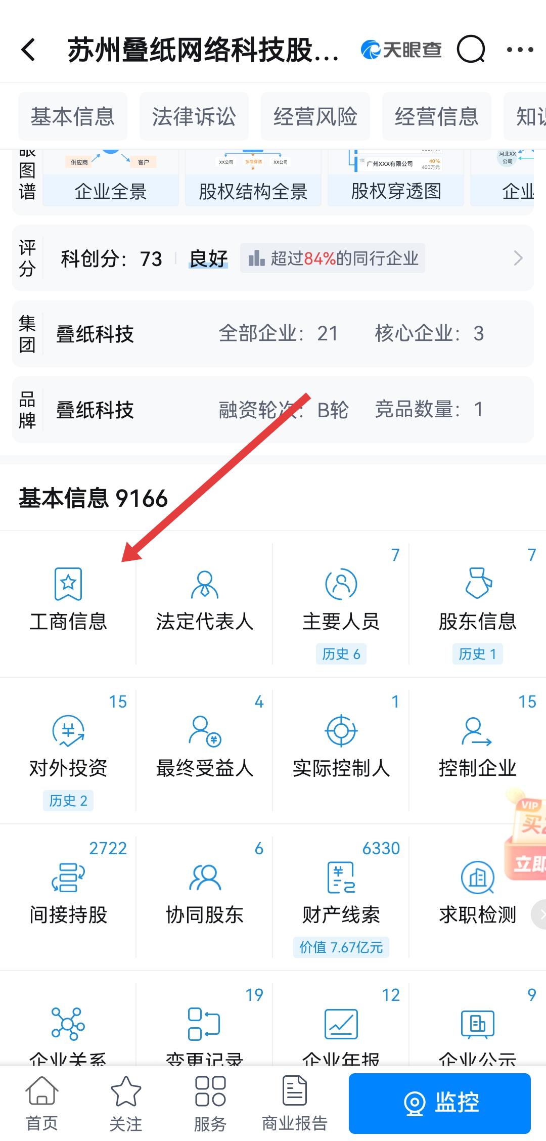 2、在企业详情页的基本信息区域,需要点击工商信息的选项,进入工商信息查询的页面。