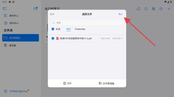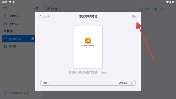 5、将pdf添加到具体位置后,再点击导入的按钮即可完成。