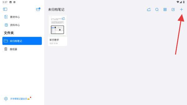 1、打开自由笔记APP,在首页内点击右上角+的图标。