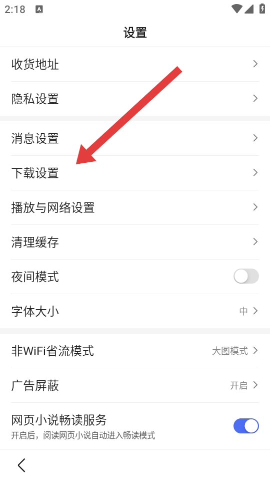 2、在设置的界面中,需要找到并点击下载设置的选项,进入下载设置的页面。