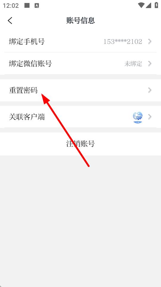 4、进入账号信息页面后,点击重置密码选项,按照提示完成密码修改操作。