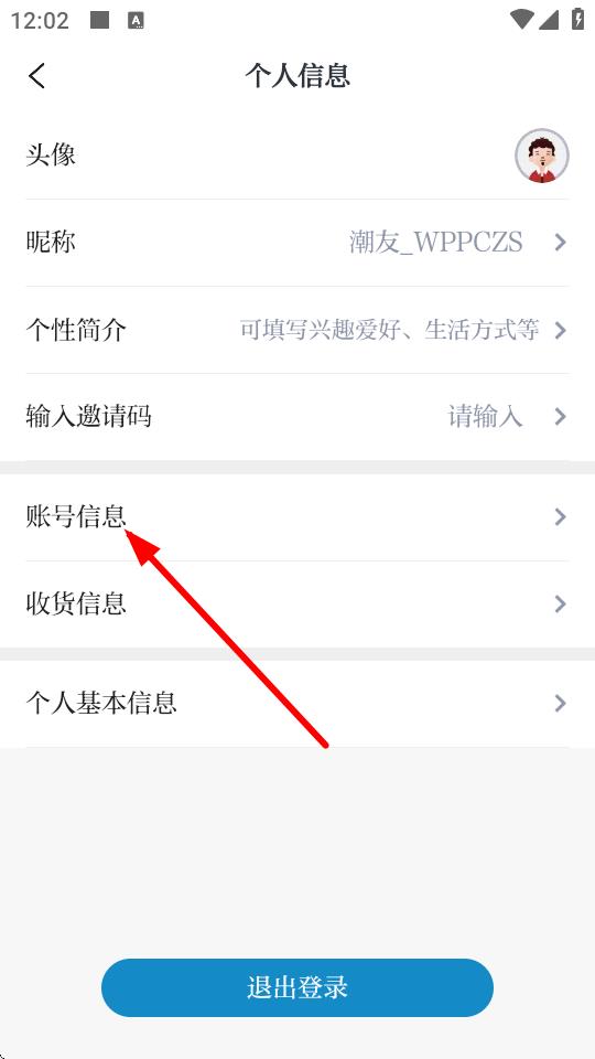 3、在个人信息界面里,点击账号信息选项。