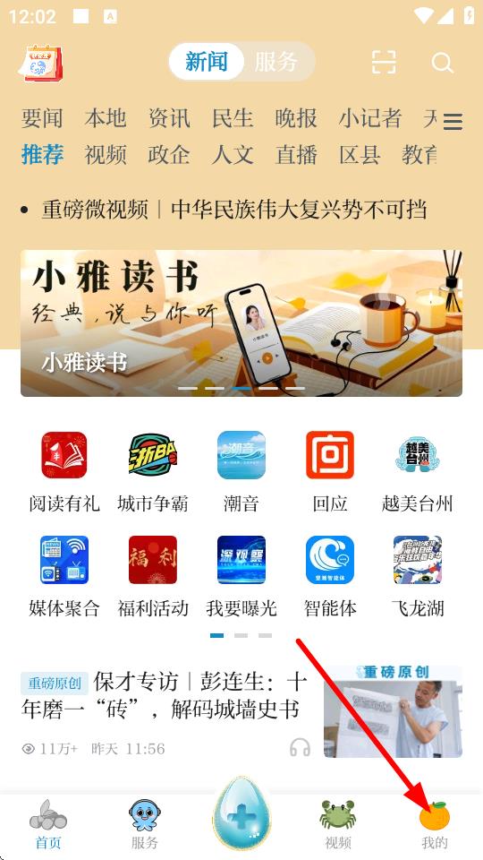 1、打开望潮app,点击底部导航栏中的我的进入个人页面。