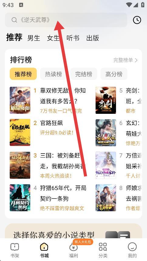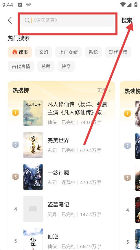2、在搜索栏中输入想查看简介的小说名称,点击搜索按钮。