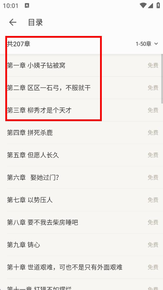3、在弹出的目录页面,即可查看书籍各章节内容。