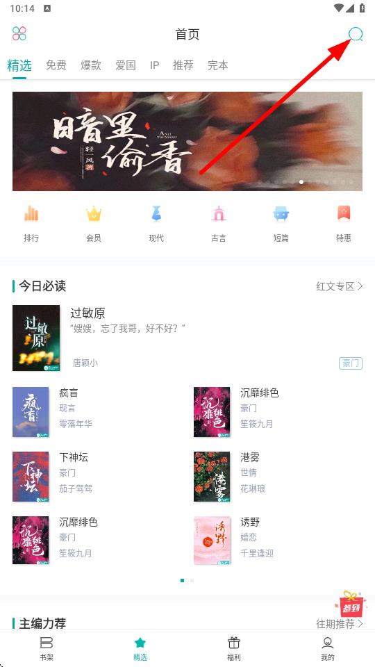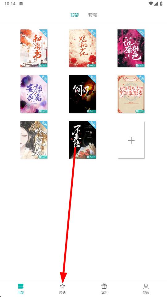 1、打开若初文学软件,点击底部导航栏中精选选项进入首页。